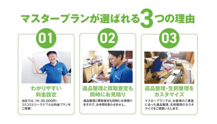 マスタープランでは、不用品回収や買取、遺品整理、生前整理、相続や不動産処分のご相談など、経験豊かなプロがしっかりとご提案させていただきます。